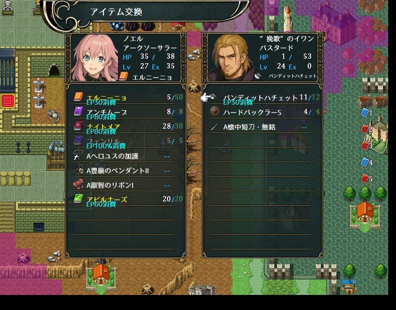 エリーゼの実家(マップ右端):(エリーゼで訪問すると)ノーブルレイピア