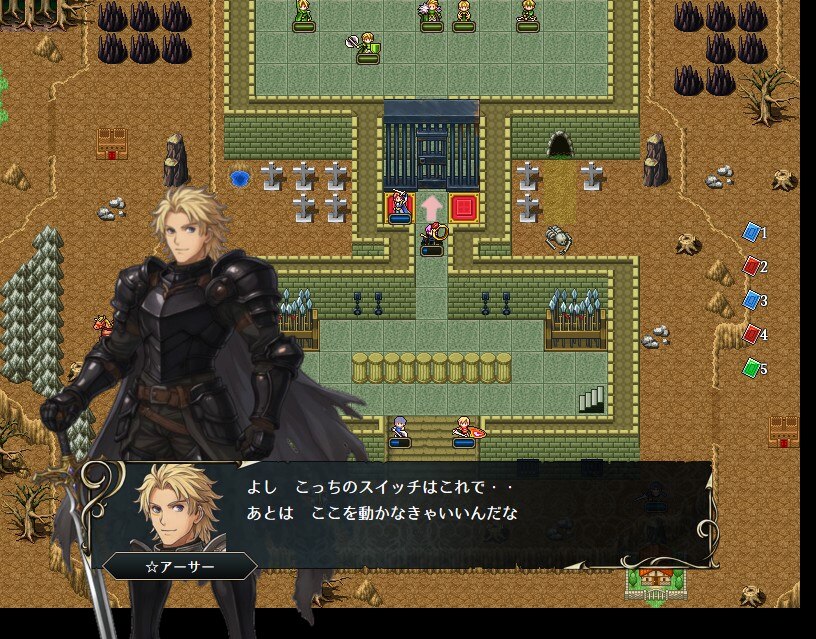 赤いスイッチにはアーサーとノエルで同ターンに乗る必要があります。