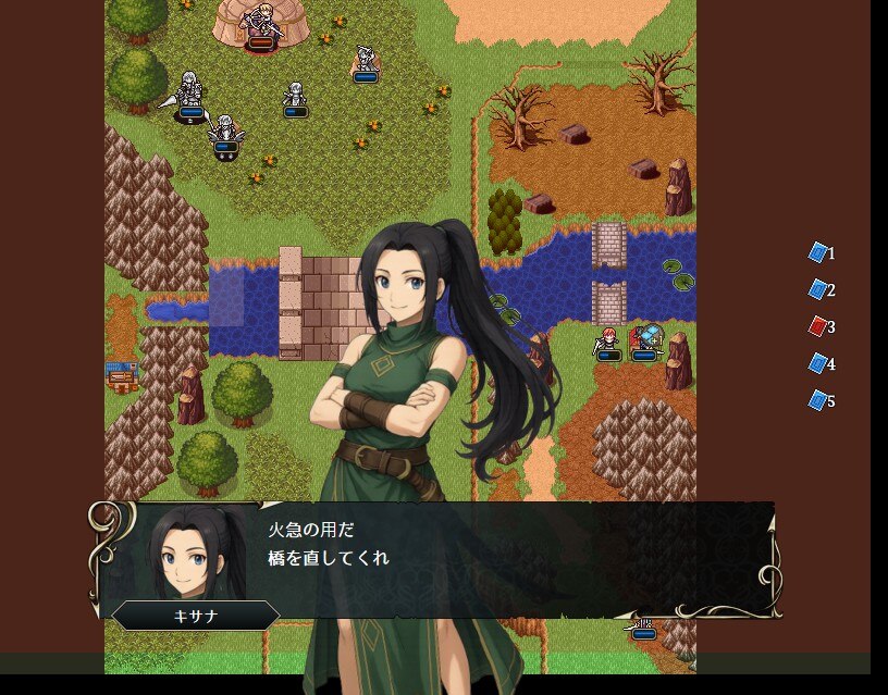 騎馬隊を制圧したら、キサナで民家に向かい橋の修復をしてOK。