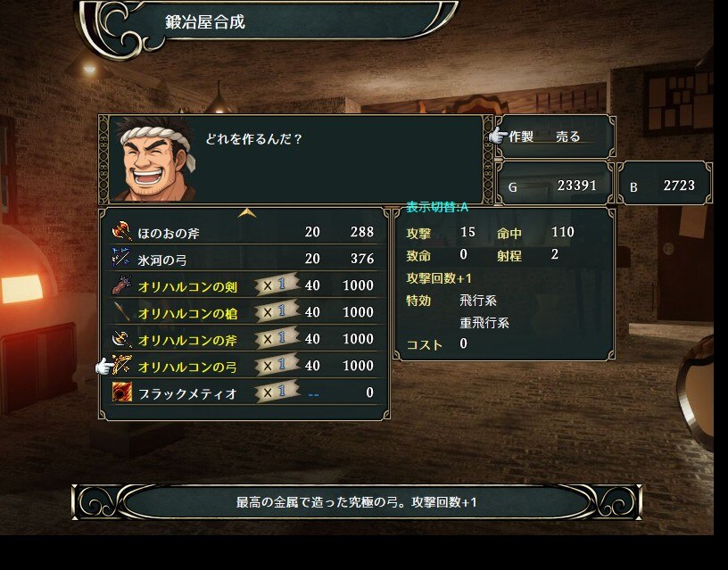 まずはオリハルコンの弓を合成。