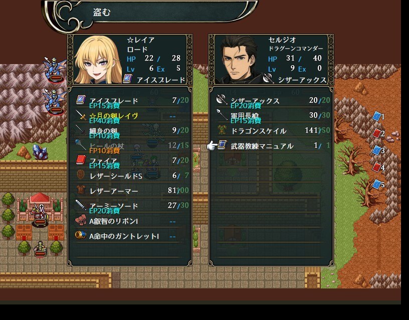 セルジオ:ドラゴンスケイル(捕縛)、武器教練マニュアル(捕縛)
