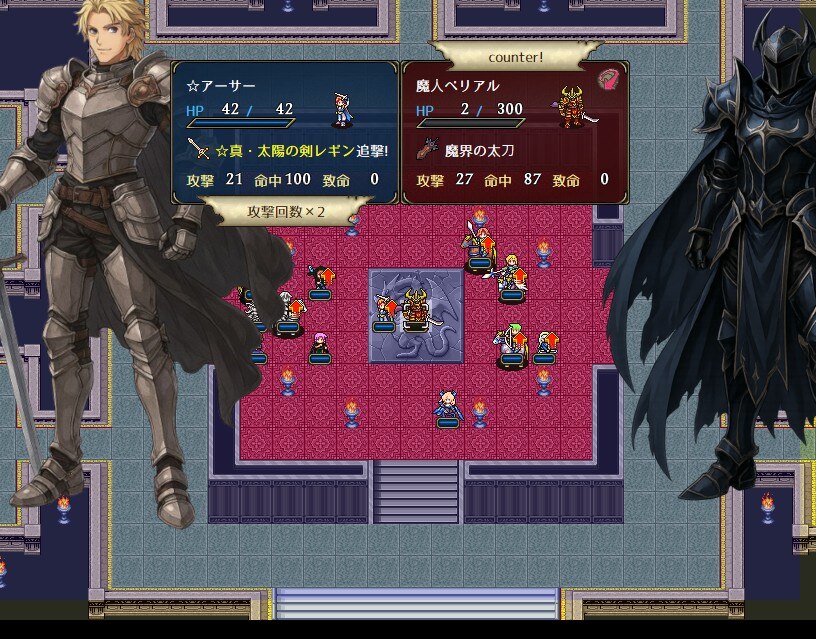 ベリアルは攻撃封じ反撃回復射程3の強敵ですが、動いてきません。