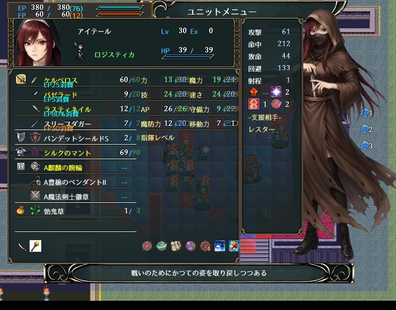 魔法剣士徽章のおかげで攻撃61まで上がってます。