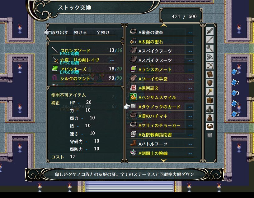 タケノコ族の陰謀で見るも無残なステータスに。