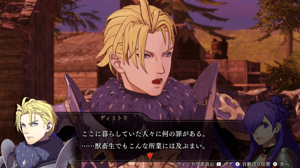 領民を虐殺している帝国軍に怒るディミトリ。