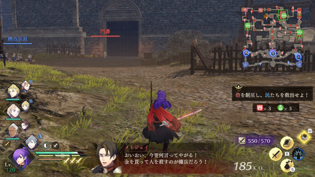 民を逃がした後も避難地点まで襲ってきますが、作戦で閉門したおかげで少し余裕がありました。